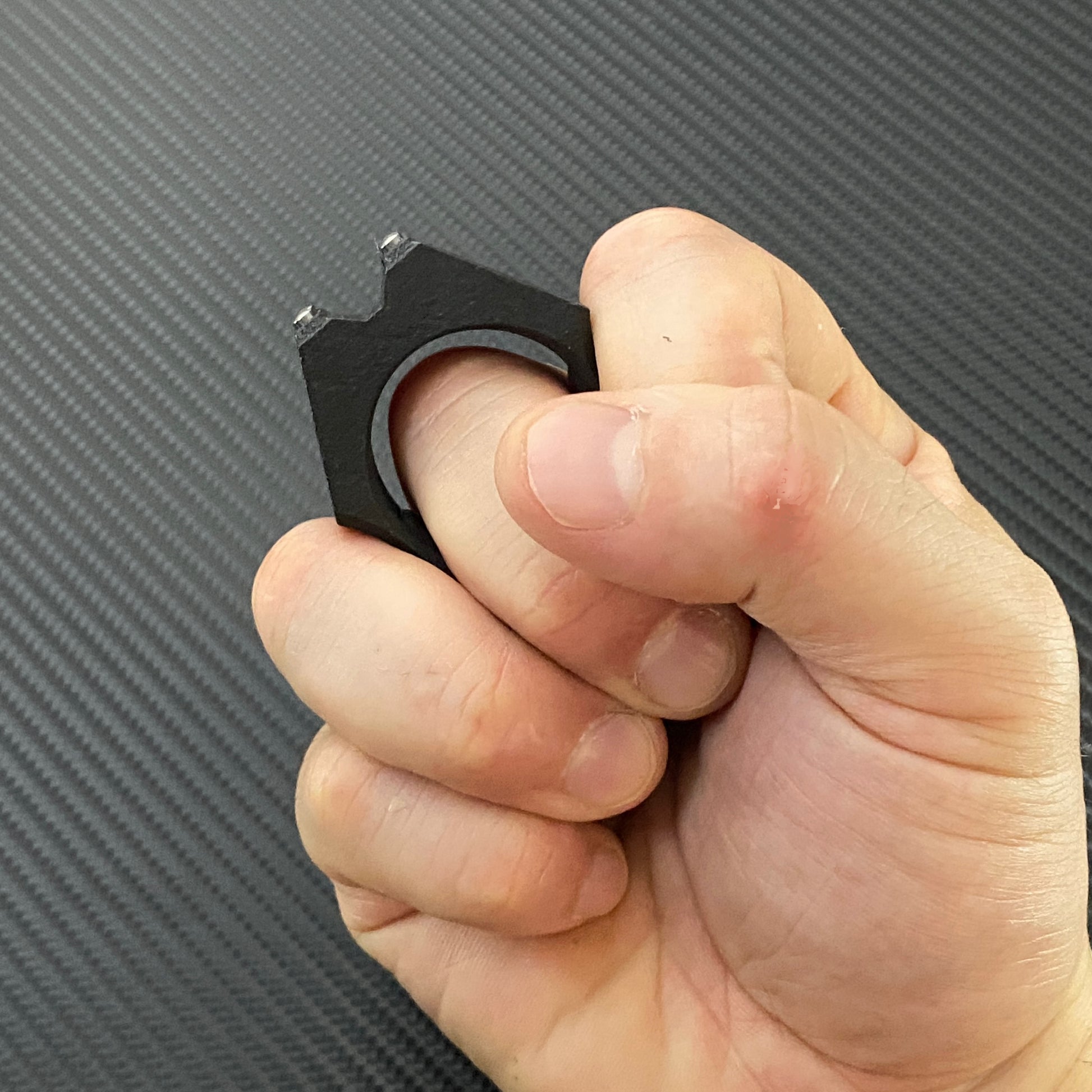 掌に収まるコンパクトさながら、握りこむと強力な打撃を生みます。